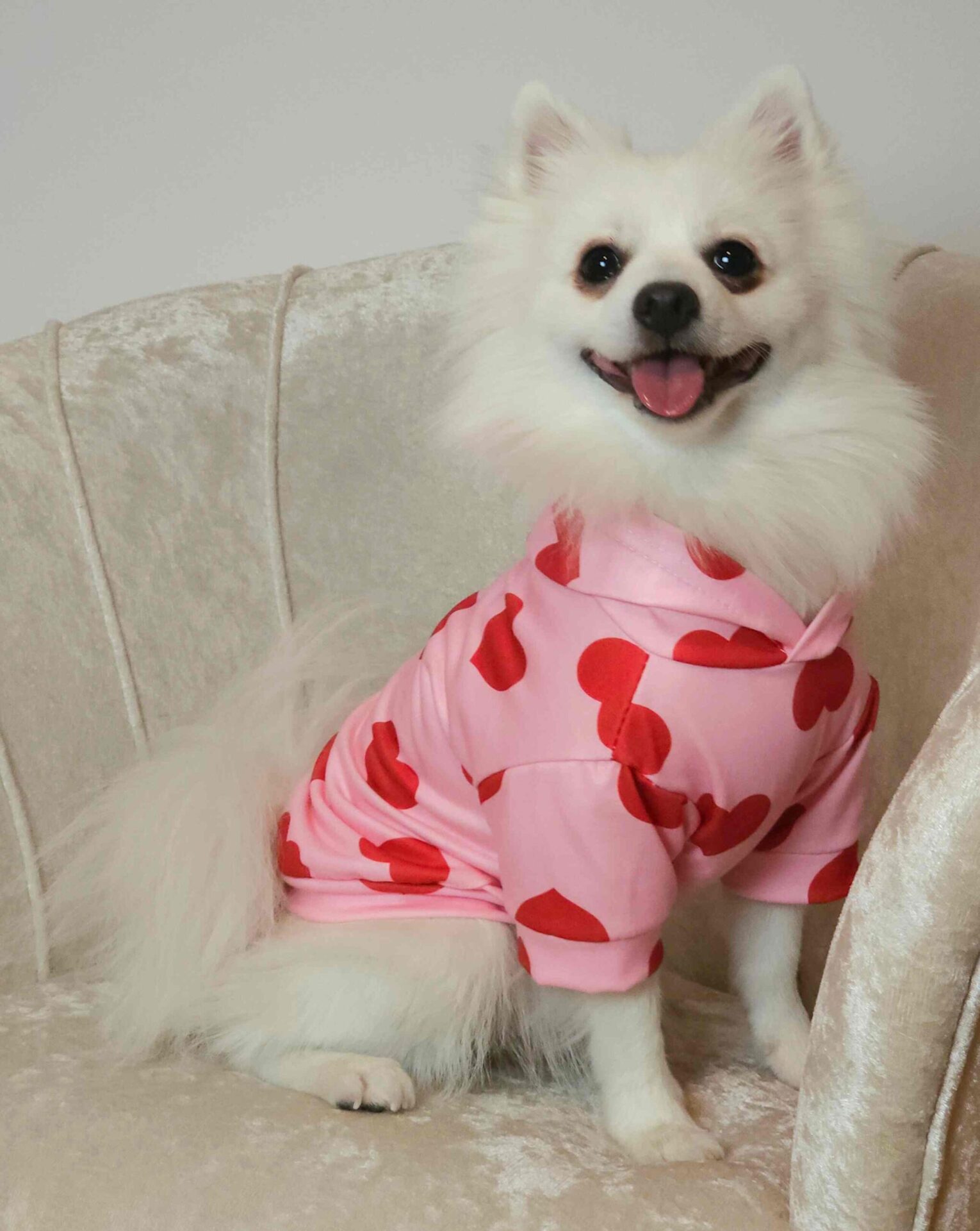 Κατασκευασμένη από μαλακό ύφασμα, αυτή η ζακέτα είναι εξαιρετικά άνετη για τον σκύλο σας. Οι καρδούλες προσθέτουν μια παιχνιδιάρικη και χαριτωμένη νότα στο σχέδιο, κάνοντας τον σκύλο σας να δείχνει ακόμα πιο γοητευτικός.