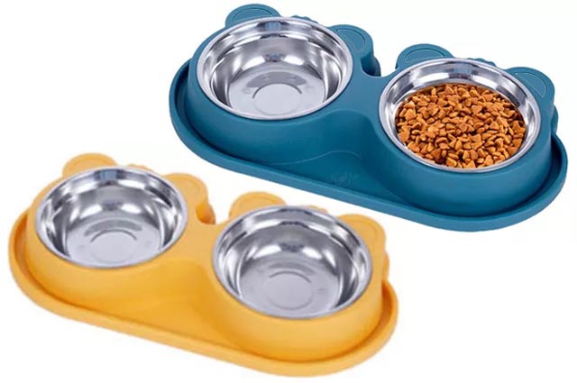 Το διπλό μπολ φαγητού & νερού είναι η ιδανική λύση για ταυτόχρονη παροχή τροφής και νερού στον σκύλο ή τη γάτα σας. Η βάση είναι κατασκευασμένη από ανθεκτικό πλαστικό σε χαριτωμένο σχέδιο αρκουδάκι, διαθέσιμη σε όμορφα χρώματα (π.χ. κίτρινο & μπλε), και προσφέρει σταθερότητα και στυλ.Τα μπολ είναι αποσπώμενα για εύκολο καθαρισμό και πλήρως ασφαλή για τρόφιμα.