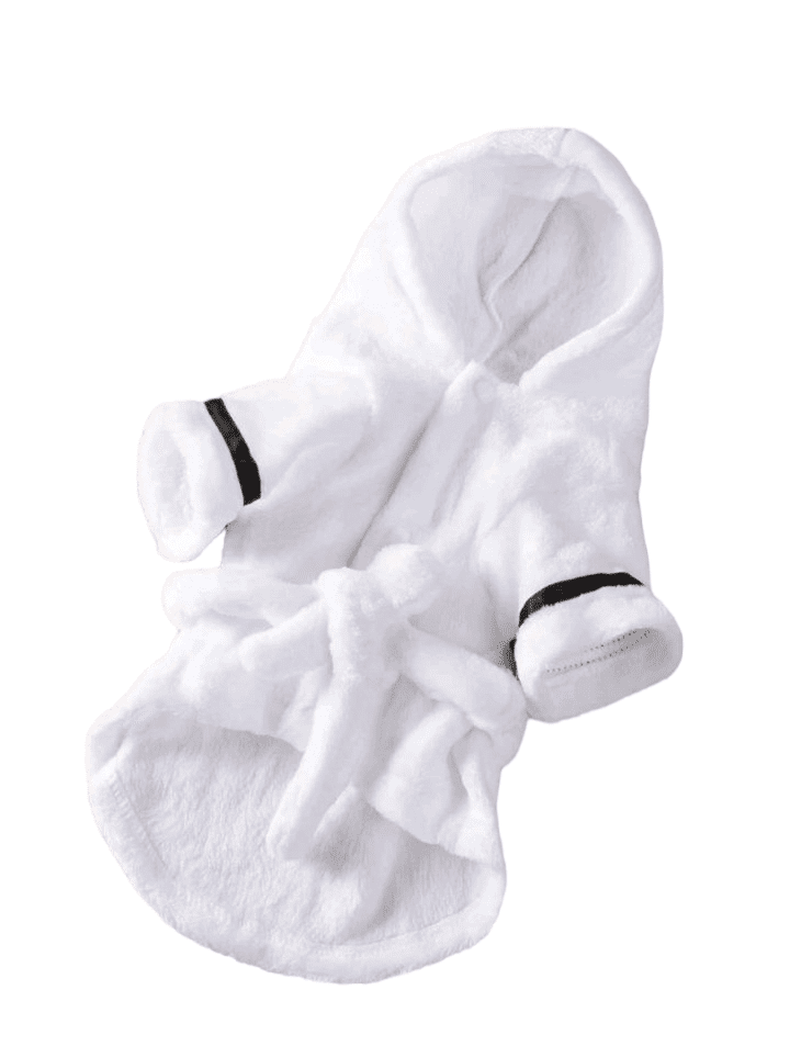 Μπουρνούζι Για Σκύλους Λευκό είναι φτιαγμένο από μαλακό, ύφασμα που προσφέρει απόλυτη άνεση και ζεστασιά στον τετράποδο φίλο σας. Η απαλή υφή του υλικού αγκαλιάζει το δέρμα του σκύλου σας, κάνοντας το μπάνιο και το στέγνωμα του μια ευχάριστη εμπειρία.