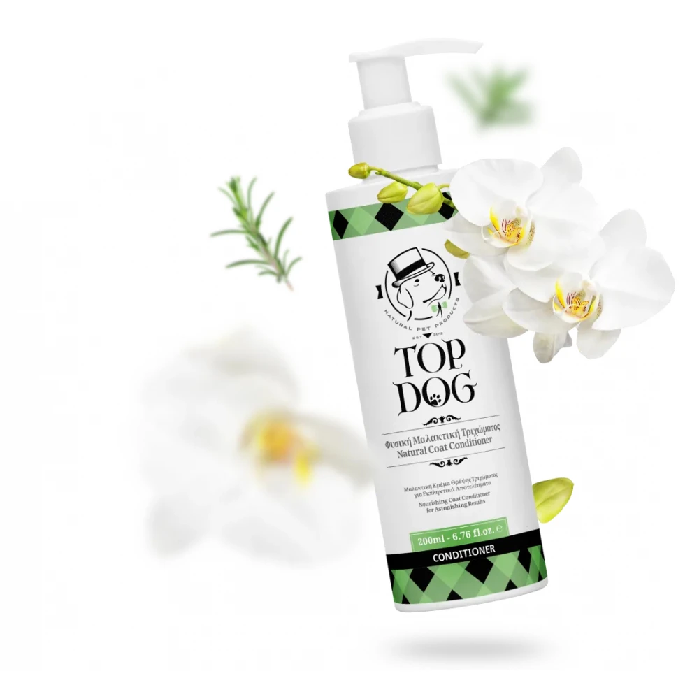 Η μαλακτική κρέμα Τοp Dog Conditioner αποτελεί ένα πλούσιο θρεπτικό γαλάκτωμα διαφόρων ελαίων και ελαφριών Σιλικονών που ενυδατώνει σε βάθος, εμπλουτίζει την τρίχα με Πανθενόλη, Φυτική Κερατίνη και Βιταμίνη Ε και επαναφέρει την υγεία ακόμα και στα πιο ταλαιπωρημένα ή σπασμένα τριχώματα. Δίνει εξαιρετικό αποτέλεσμα και όγκο διευκολύνοντας το ψαλίδισμα για πιο συμμετρικές κοπές. Βοηθάει πολύ στο μαλάκωμα των κόμπων και επιταχύνει το στέγνωμα σε όλες τις περιπτώσεις λόγω της μοναδικής του σύνθεσης. Σχεδιασμένο για απαιτητικά αποτελέσματα σε διαγωνισμούς.