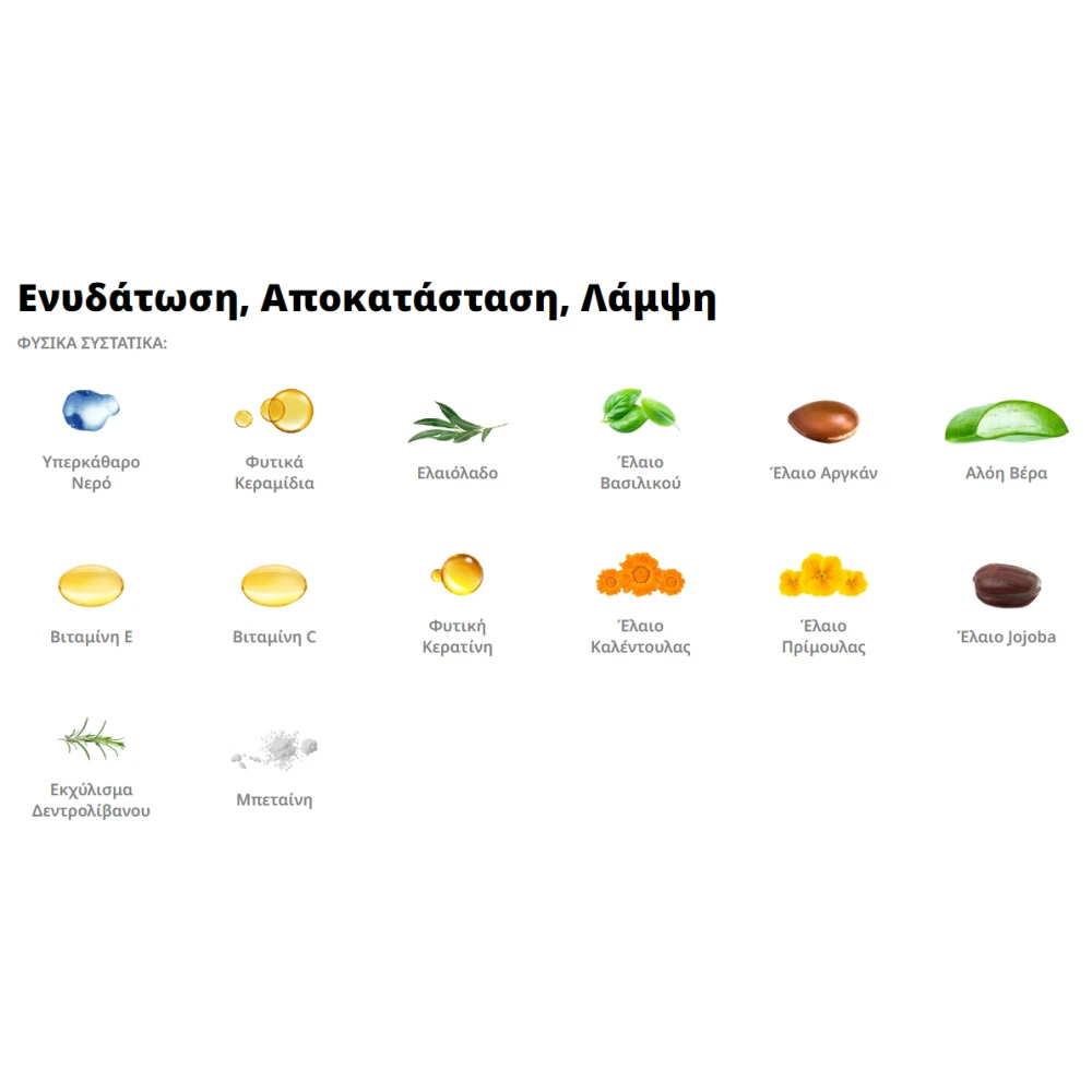 Για βαθιά ενυδάτωση και επανόρθωση τριχώματος. Eύκολο χτένισμα, απαλότητα και γρήγορο στέγνωμα.